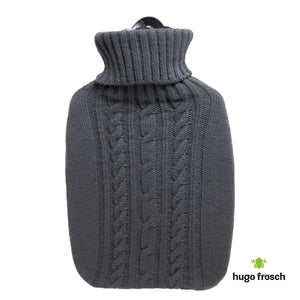 Hot Water Bottle Classic with Cover, Knitted - Dark Grey