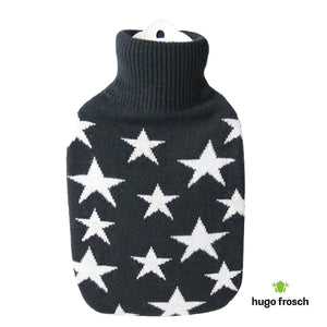 Hot Water Bottle Classic with Cover, Knitted - Stars Black & White